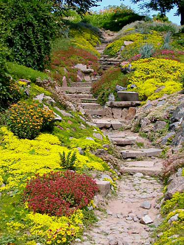 „Гірка декоратиних сукулентів” розташованоа на південному схилі висотою 15 м, на вершині якої штучно насипаний пагорб висотою 2,5 м, що збільшує враження гористого характеру рельєфу. Декоративність ділянки забезпечується не тільки рельєфом, а також поєднанням зелених насаджень, кам’яного розсипу, формами окремих каменів, сходинок та кам’яних лав, альтанки та квітучих квітниково-декоративних рослин.
