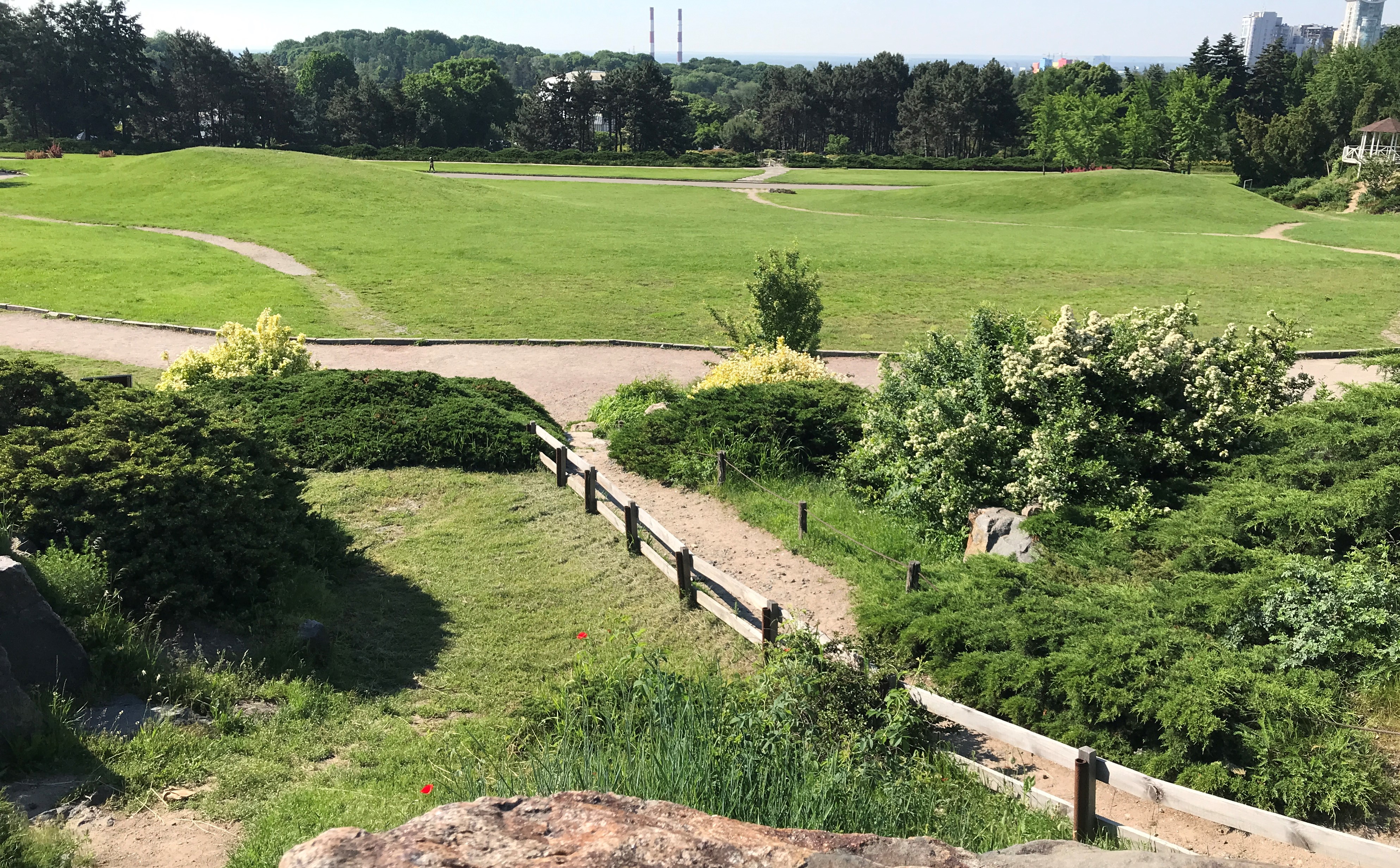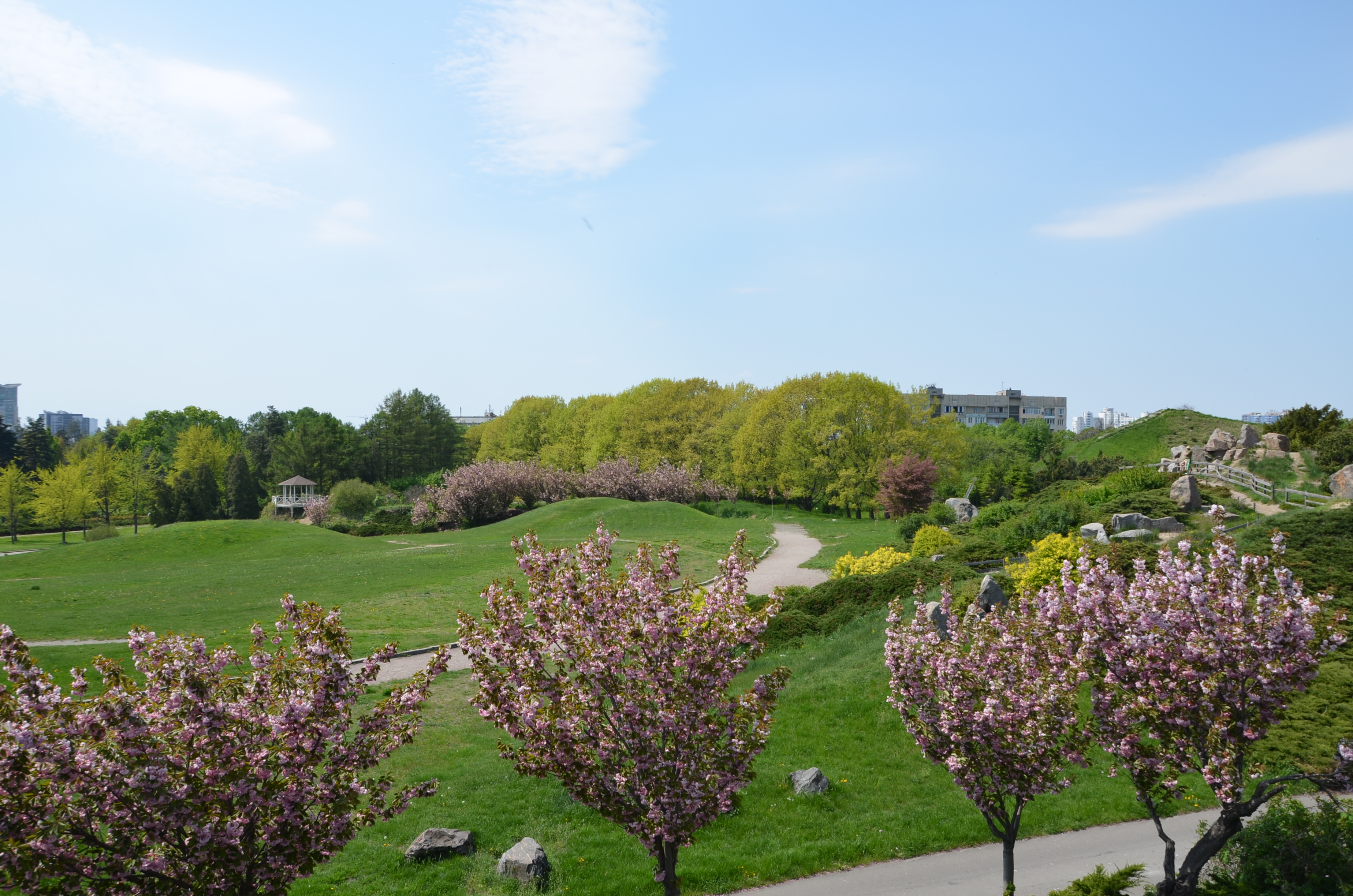 Гірський сад розміщений на одній із самих високих місць ботанічного саду, де відкриваються чудові краєвиди на простори Дніпра та задніпровські далі.