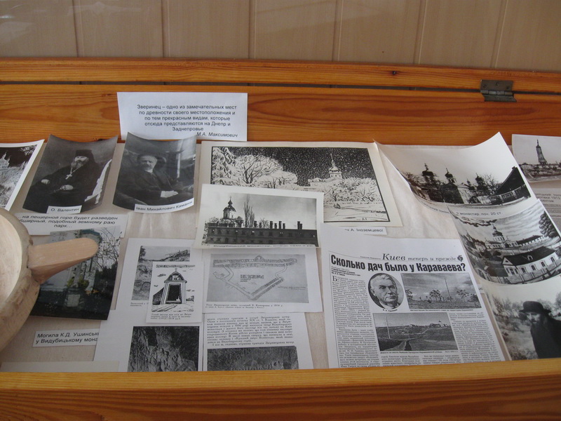 Відділ № 1 – загальна історія ботанічного саду. Розпочинається експозиція з історії території, яку нині займає ботанічний сад – історичної місцевості Києва «Звіринець». Це археологічні матеріали, відомості про Звіринецьке укріплення Нової печерської фортеці, Видубицький та Свято-Троїцький Іонінський монастирі, вибух порохових складів на Звіринці 1918 р. тощо. Далі йдуть матеріали про передумови заснування в Києві академічного ботанічного саду у 1918–1935 рр., Акліматизаційний сад академіка М.Ф. Кащенка. Основою експозиції цього відділу є проекти (реалізовані та нереалізовані), документи та світлини часів будівництва саду, відкриття саду для відвідування у 1964 р., інформація про очільників саду різних часів, видатних учених, які зробили значний внесок у розбудову саду Також тут представлені перші наукові збірники та путівники по ботанічному саду, сучасні путівники, книги по історії та розвитку установи.